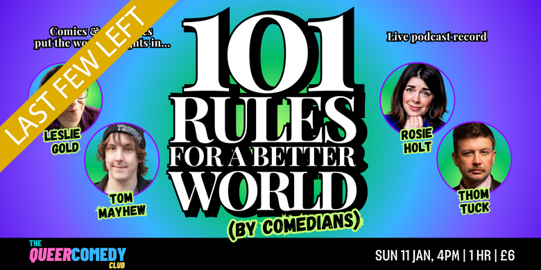 So funny! Loved the comedian’s ideas and the banter between them. And the audience joining in. Can’t stop thinking about what my rules would be. Would definitely go again.